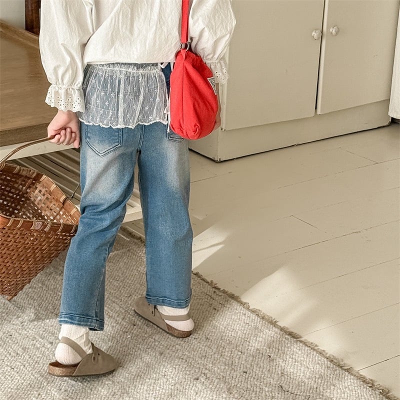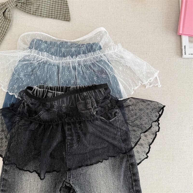 おしゃれなレース付きが特徴のデニム。