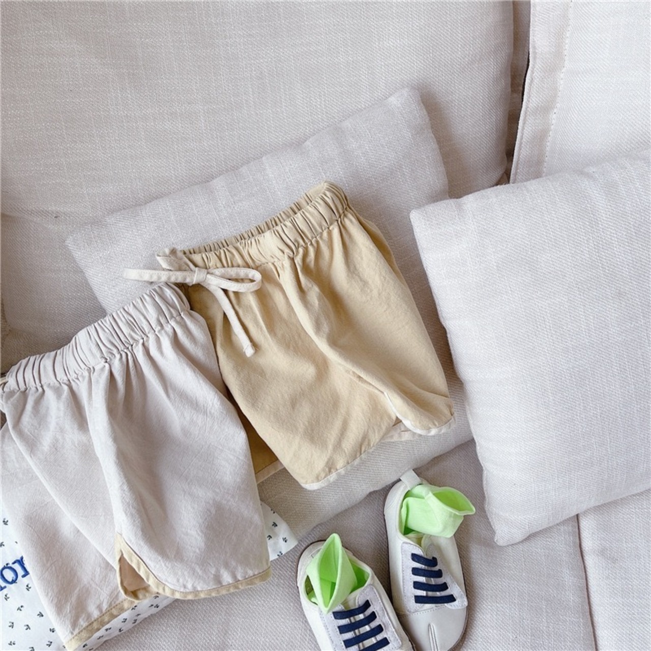 夏らしいバイカラーショート丈パンツ。