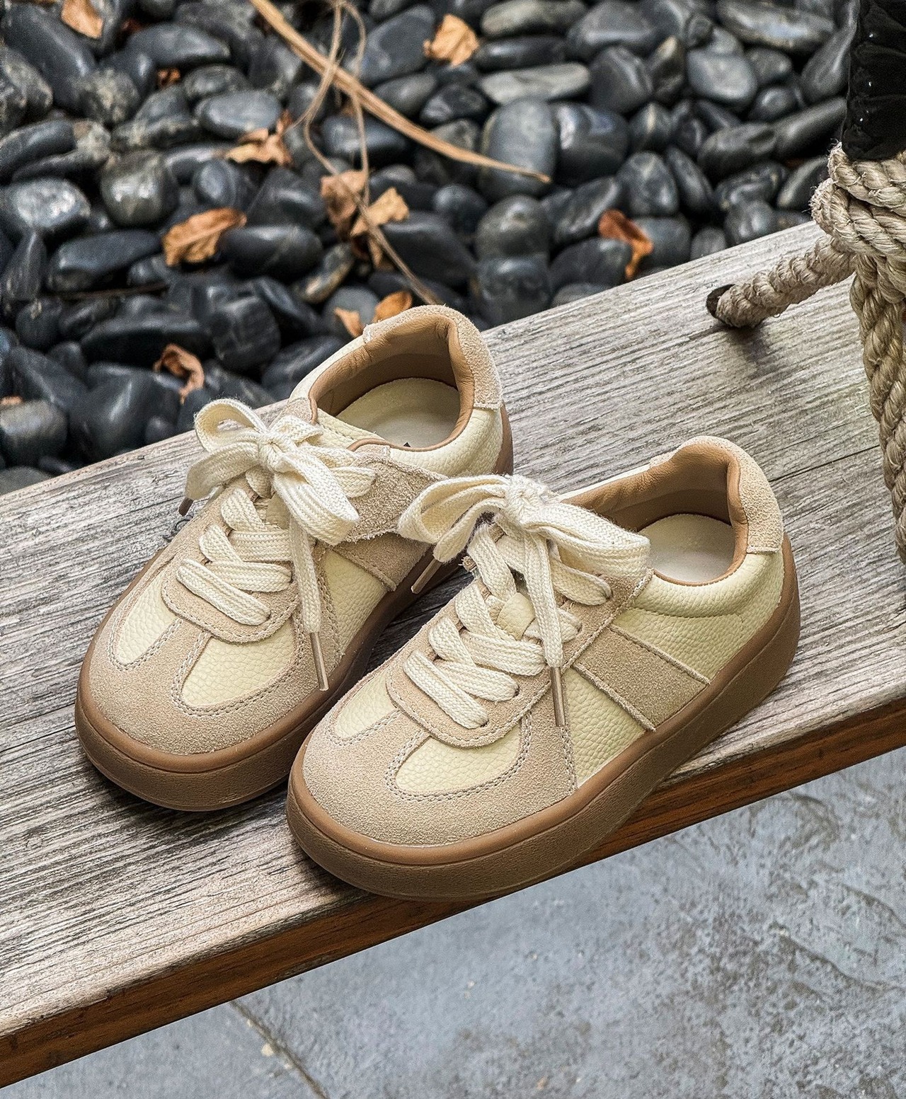 オシャレな淡いカラーのスニーカー。
