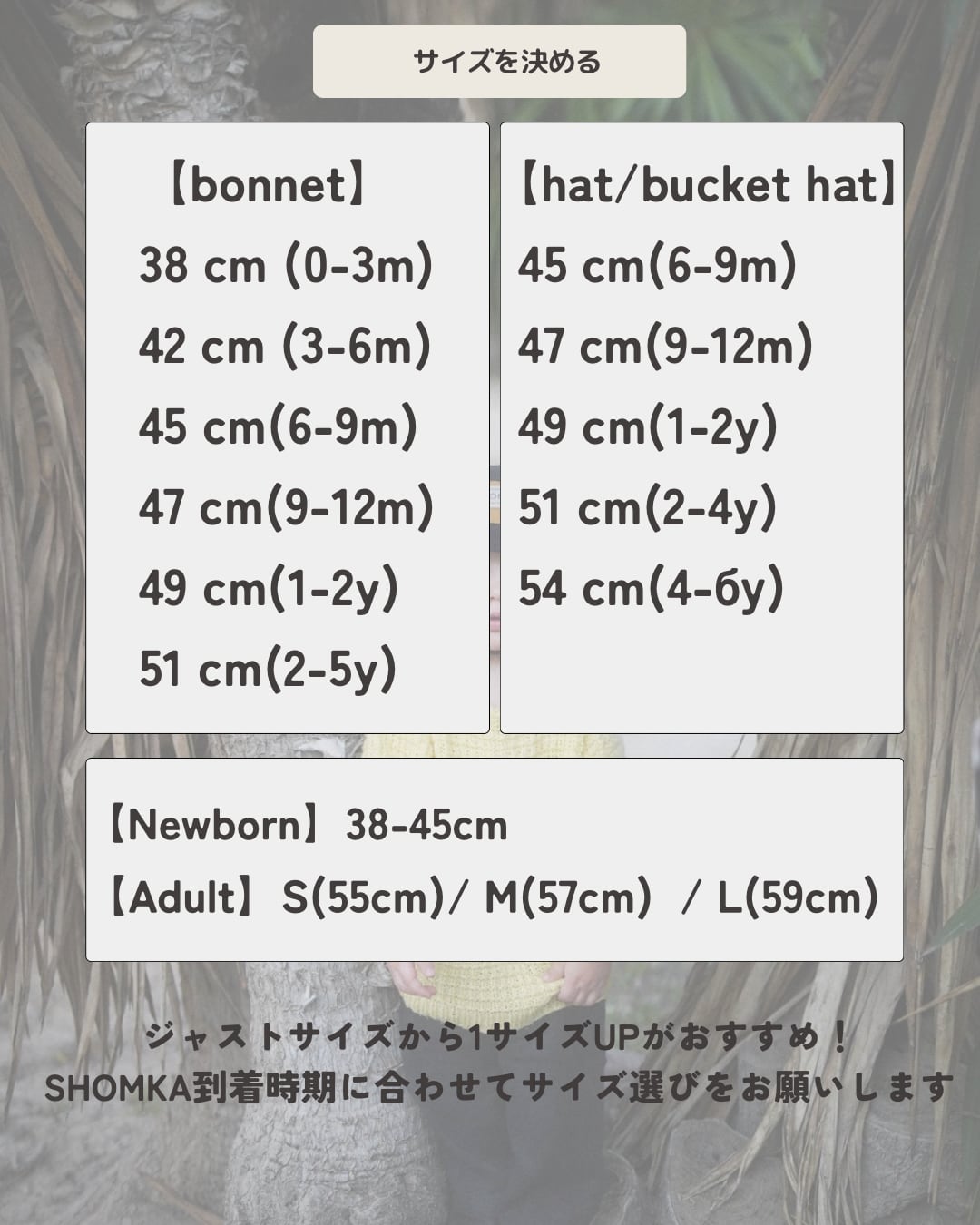 SHOMKA到着時期に合わせてサイズ選びをお願いします。